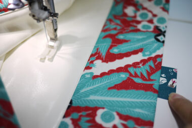 Press down the seam of the cord opening to the lining fabric side and sew to secure for a clean look.