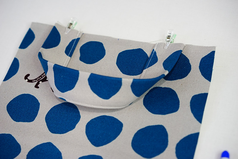 Baste the handle on the back side of the bag body.