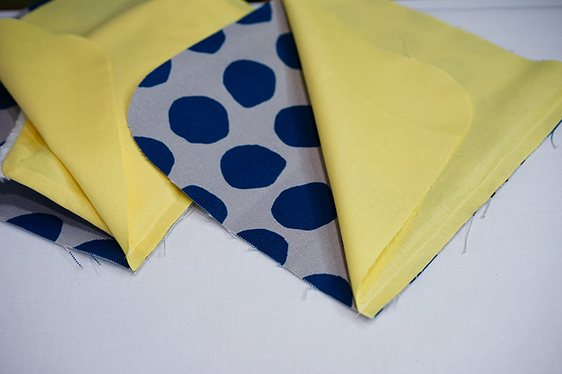 Cut off excess fringe (fabric edge), and make a slit on the curve.