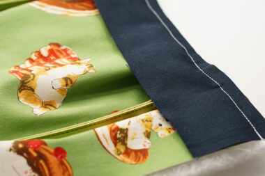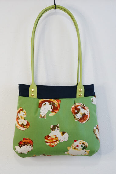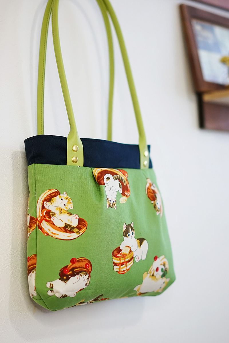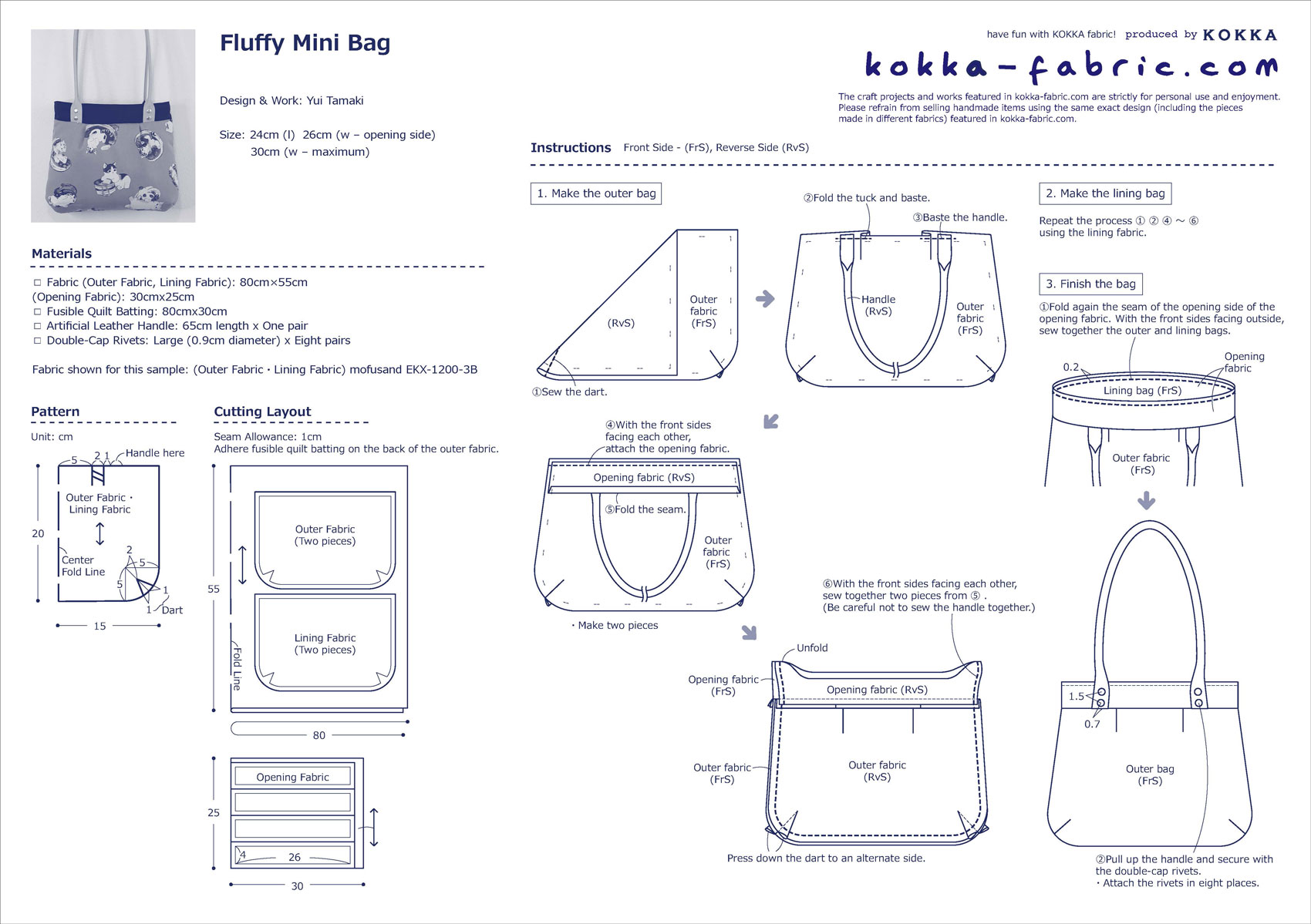 This mini bag is made with tucks and a quilt batting to give it a fluffy feel. The featured fabric with cute cat gestures and expressions is from the “mofusand” series, designed by Juno, who is popular for her SNS and LINE stamps. The 100% cotton oxford is perfect for making bags and is easy to sew, even for sewing beginners.
