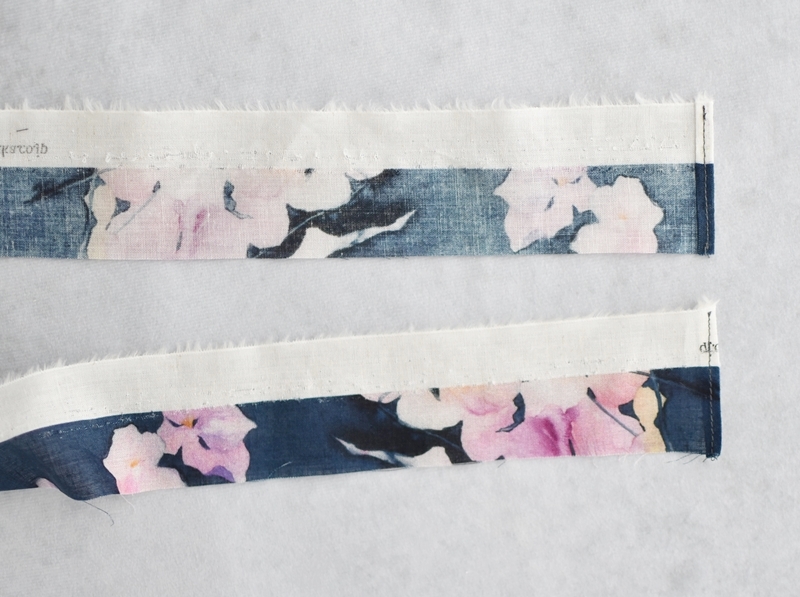 Apply two lines of rough stitches (at 5mm and 7mm) on the frill fabric for gathering.