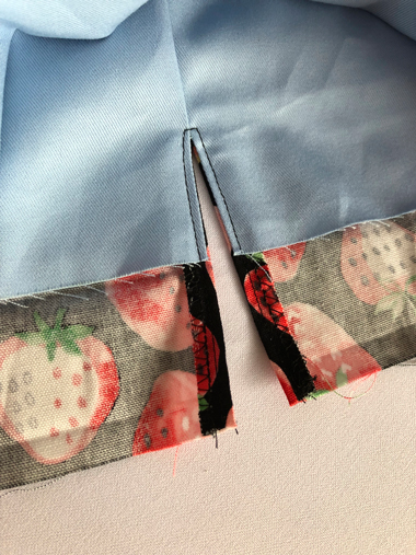 Fold the hem of the frill in three to 1cm seam and sew. Apply zigzag stitches on the edge of the attachment side.