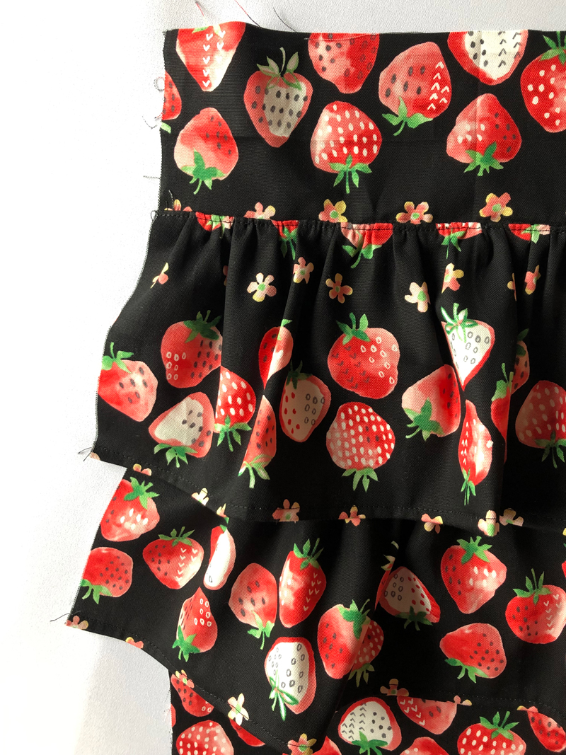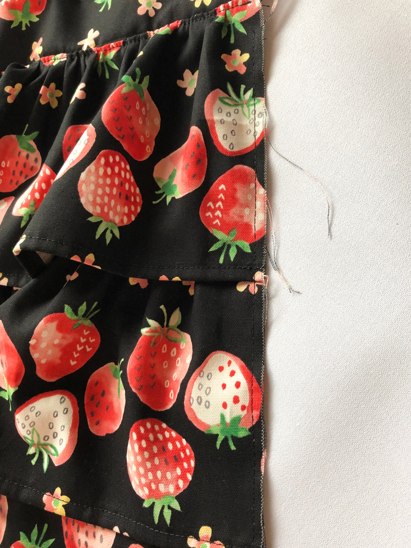 Fold the hem of the frill in three to 1cm seam and sew. Apply zigzag stitches on the edge of the attachment side.