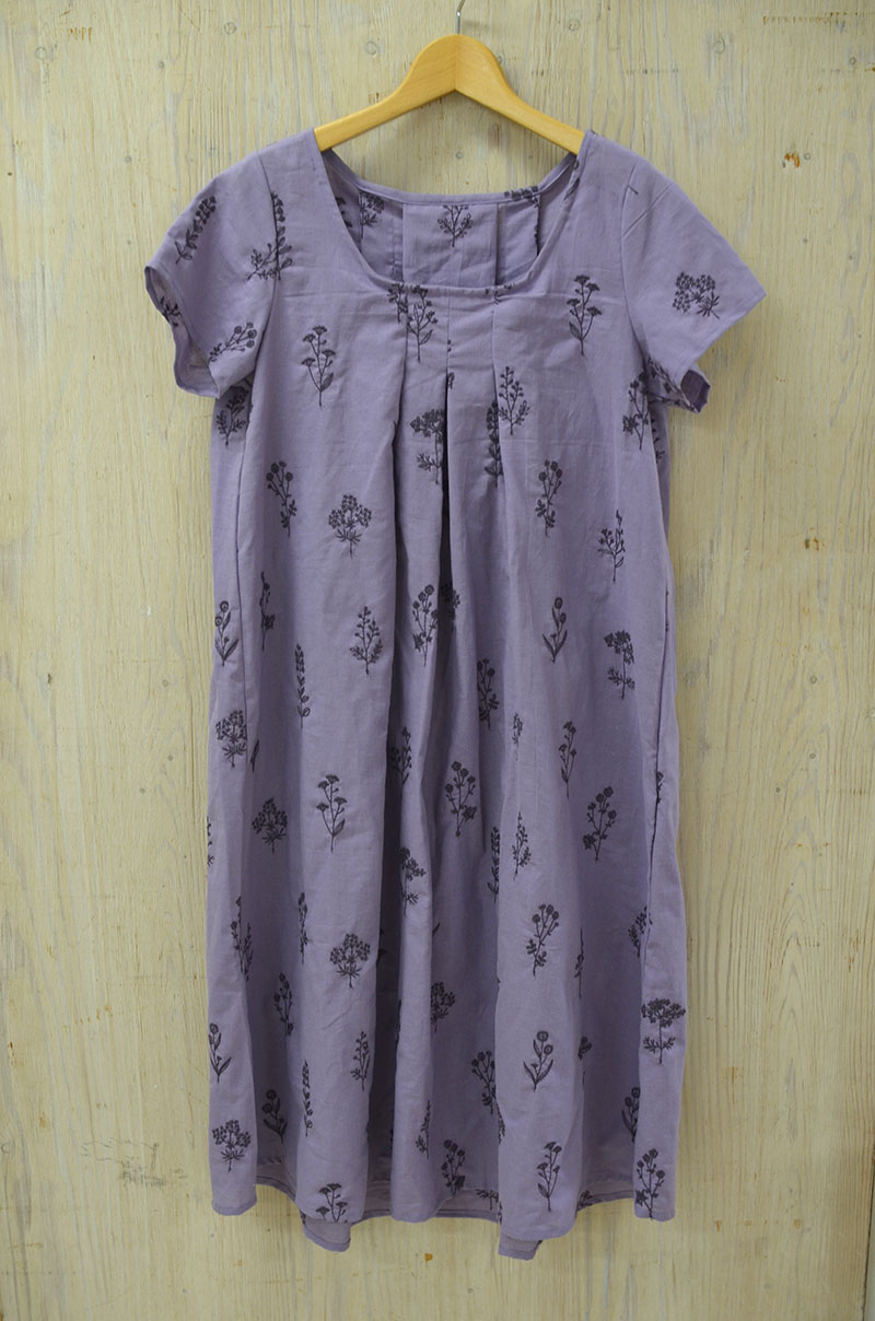 This front tuck dress features a clean neck to chest line with a look of softness created by the tucks around the chest. From the Botanical series, the cotton linen sheeting fabric has a feminine feel by utilizing embroideries. As part of the upcoming season’s wardrobe, this casually worn dress is going to be a frequently enjoyed piece.
