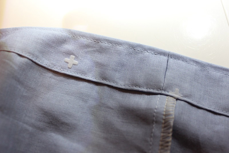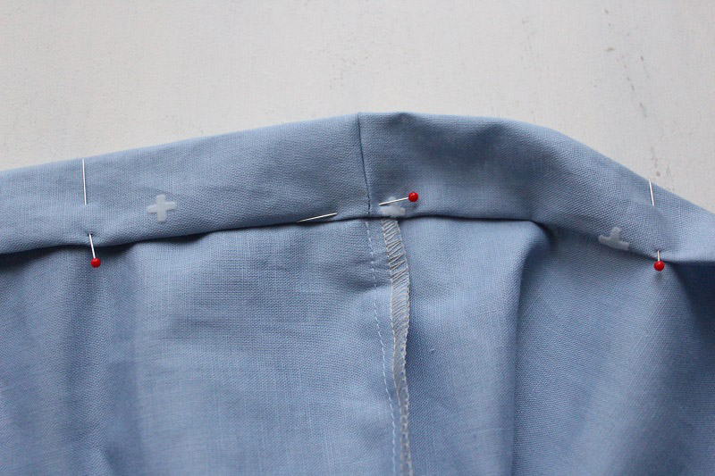 Mark the strap location on the skirt at 8cm from the top. Baste the strap (on both sides).