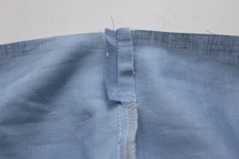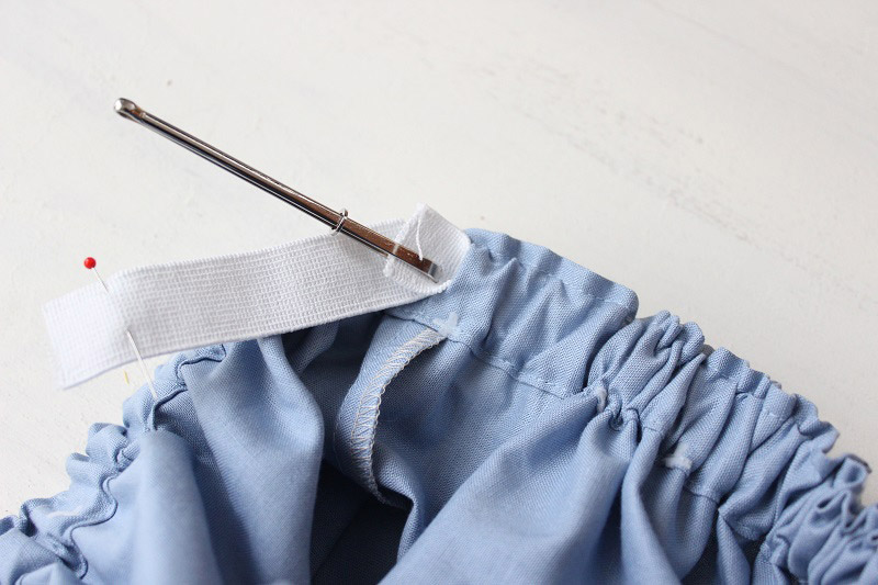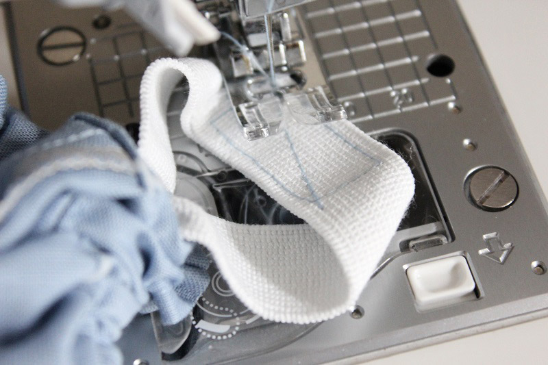 For the opening for elastic tape, cut and open the seam at 5cm from the top. Run zigzag stitches beneath the opening.