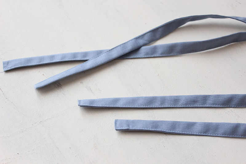 For the strap, you need two pieces of fabric each measuring 70cm (l) x 4.5cm (w)