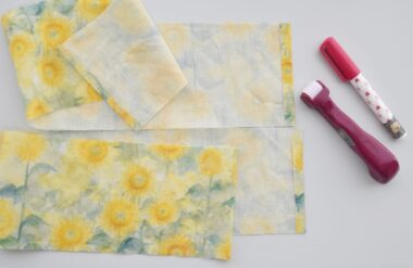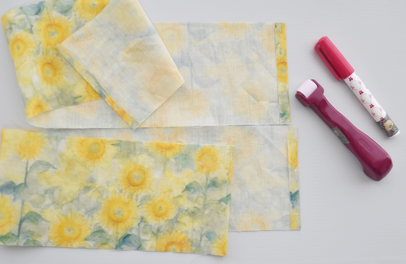 For gathering, fold both sides of the fabric for 1cm and baste using an adhesive.
