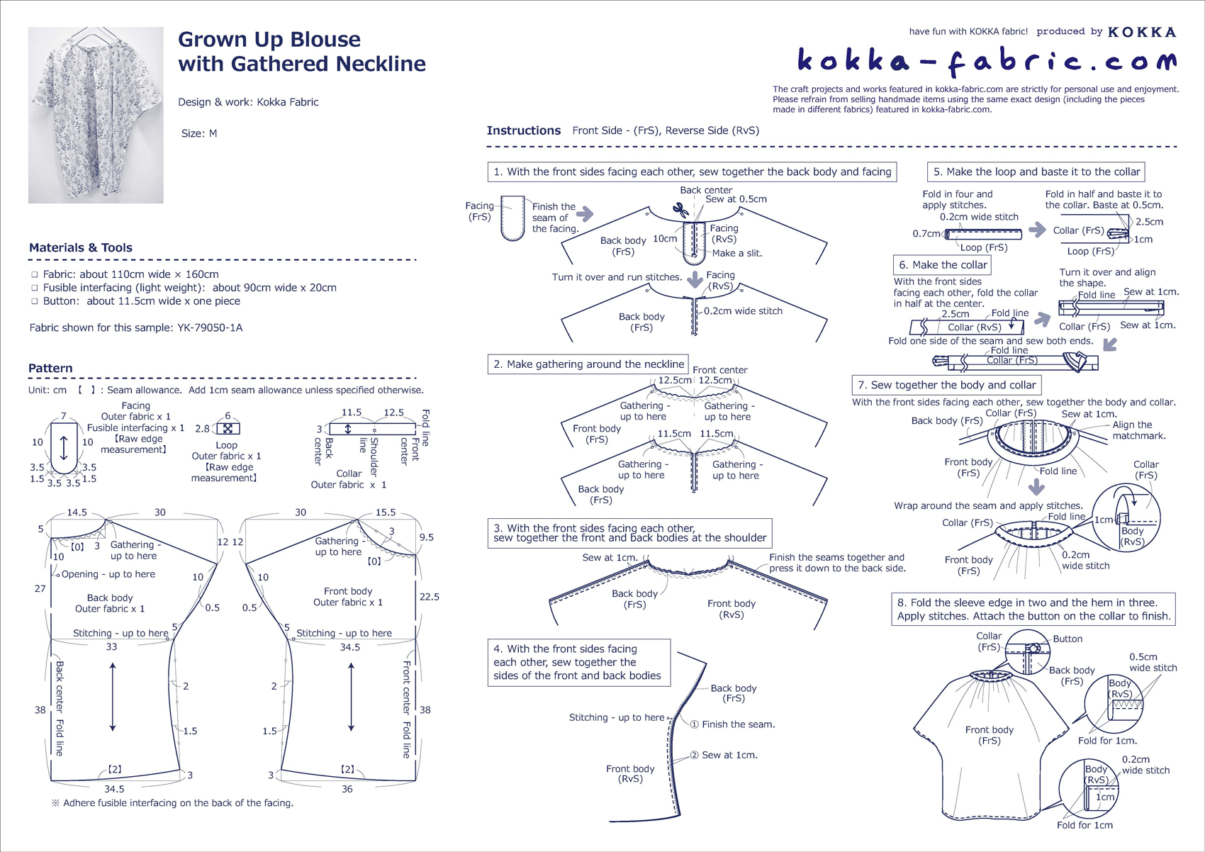 The showcased project is a soft style blouse in a combined body and sleeve design with a gathered neckline. Cotton 100% compass fabric from the Closet-Botanical series is splashed with a wildflower-filled botanical pattern, bringing a relaxed and gentle feeling to you.