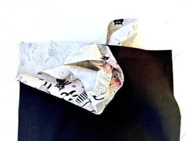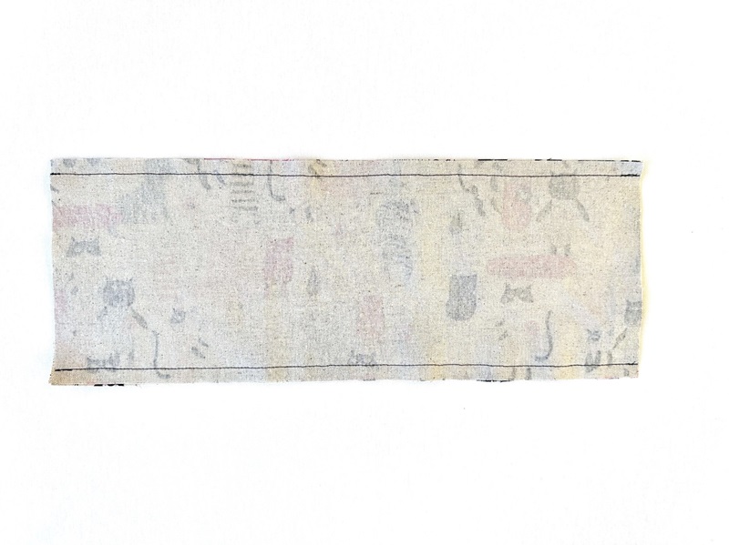 With the front sides facing each other, sew together the top and bottom of the pocket fabric.