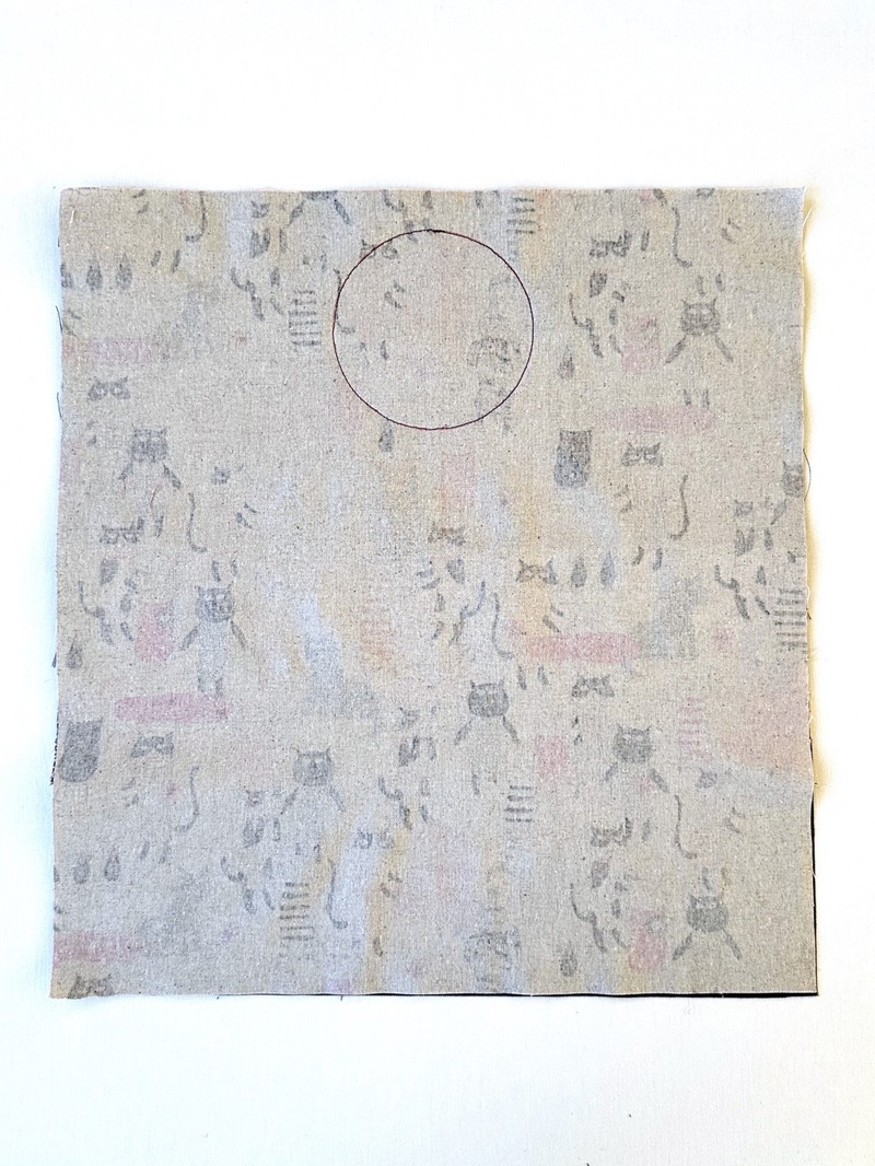 Draw a 10cm diameter circle on the reverse side of the outer fabric.