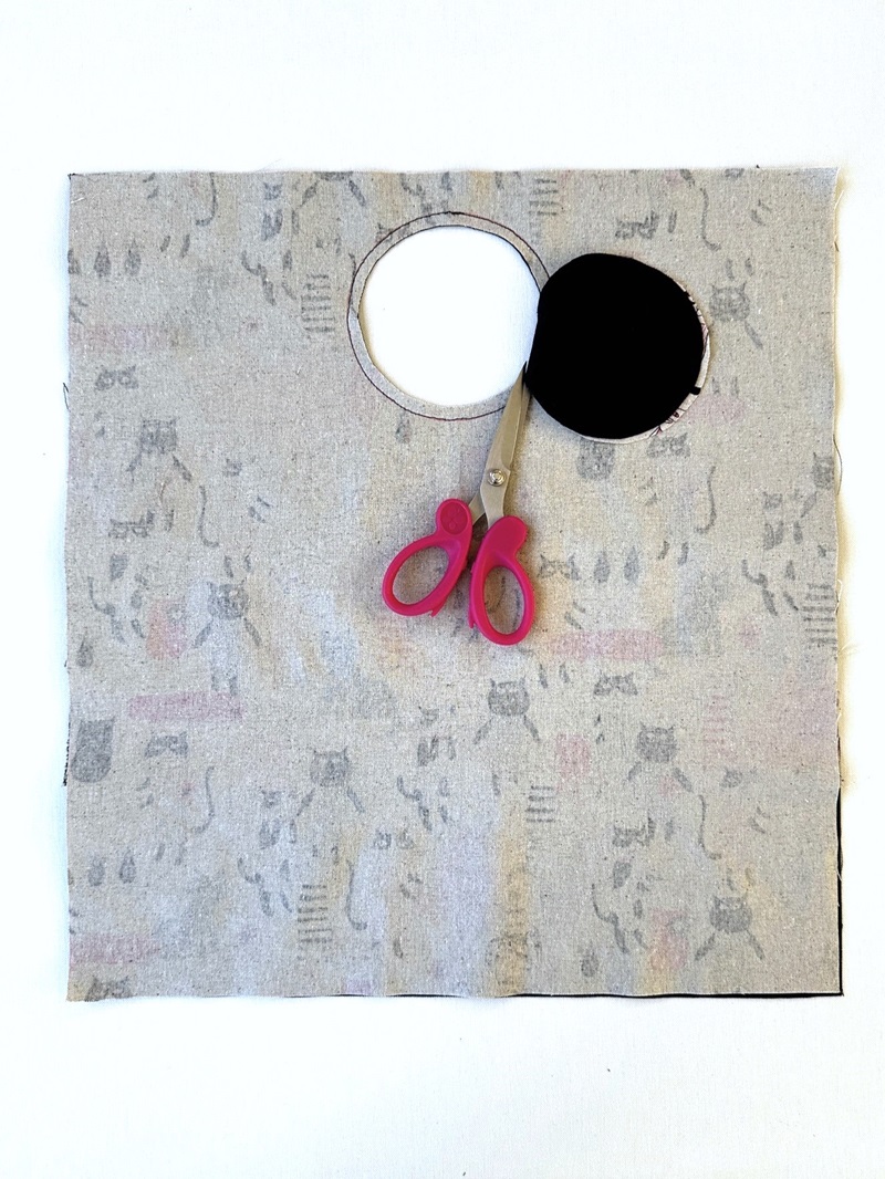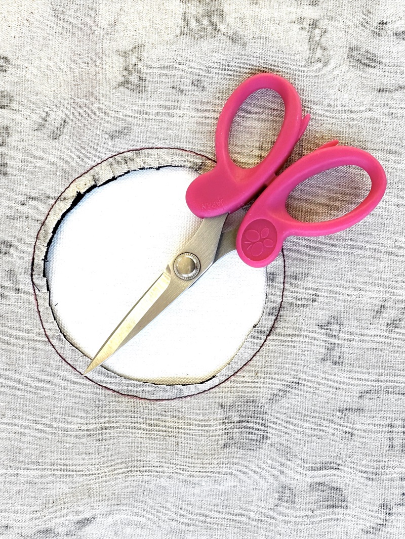 For the cut-out circular handle, it is best to sew the curve slowly. You will get a beautiful curved finish by cutting fine slits almost to the edge of the seam when turning the piece over.