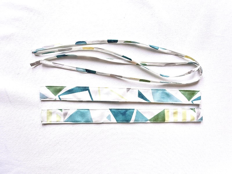 Fold both ends of the handle and cord fabric for 1cm. Fold in four and sew.