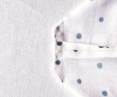 Press the seam open. Make 8cm gusset. Cut off excess seam and apply zigzag stitches.