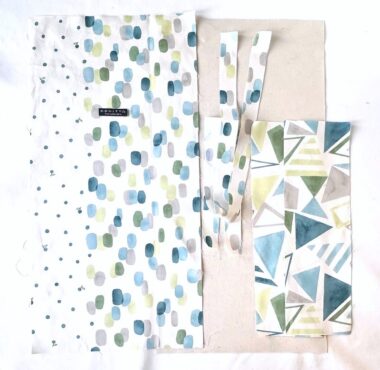 The placement of the patterns are well thought out. Of the three patterns, the simpler circle and square designs are used as the body, while the more impactful triangle motif is placed on the handle. To make the most of the patterns, the main body features a single fabric, rather than two pieced fabrics. The drawstring cord is made of the same fabric instead of using a ready-made cord for a uniformed look.