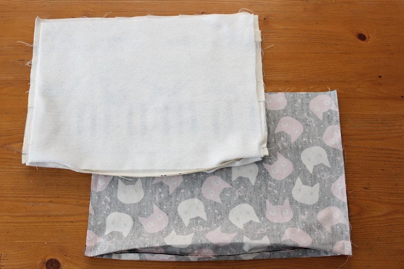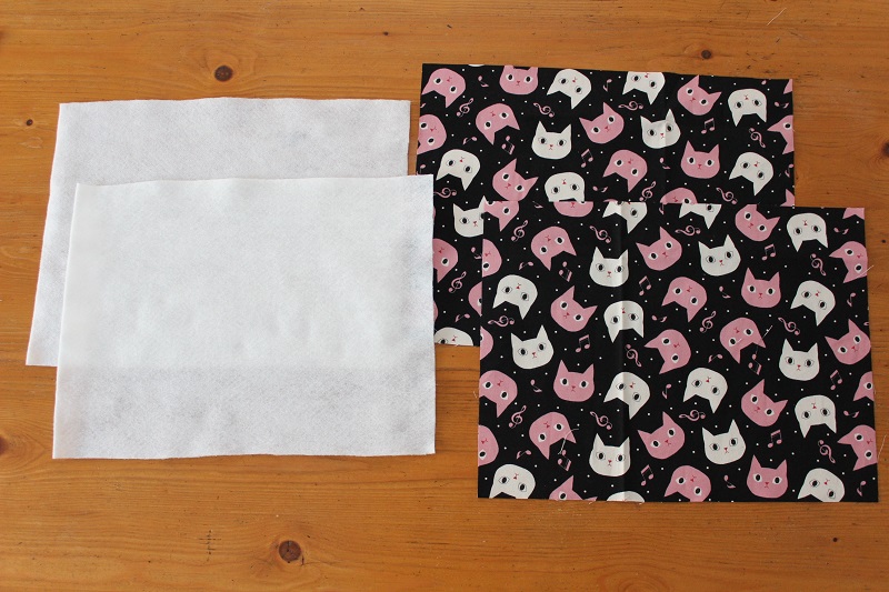 Prepare the lining/inside fabric. The size is 32cm x 42cm. The fusible quilt batting should be cut at 30cm x 40cm, excluding the seam allowance. Besides the handle, add 1cm seam allowance to all cut pieces.