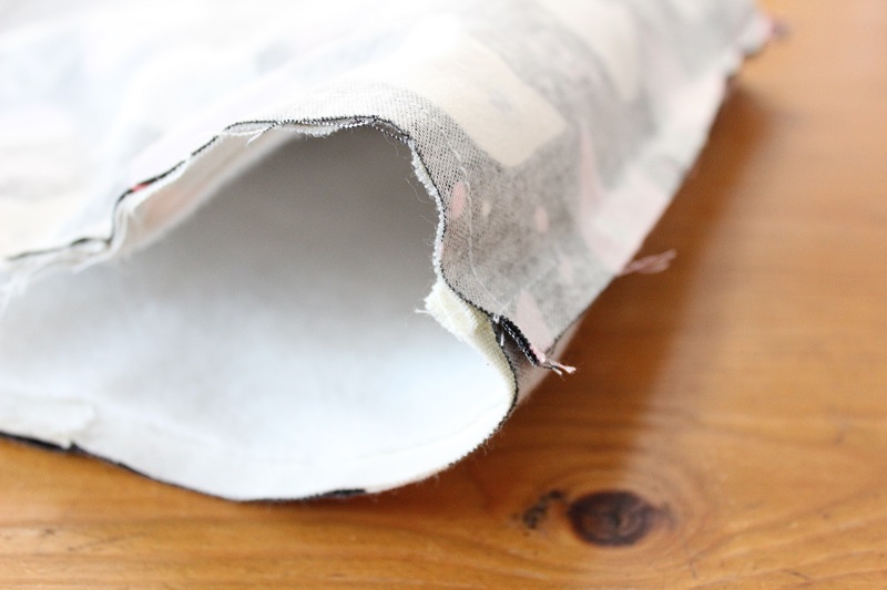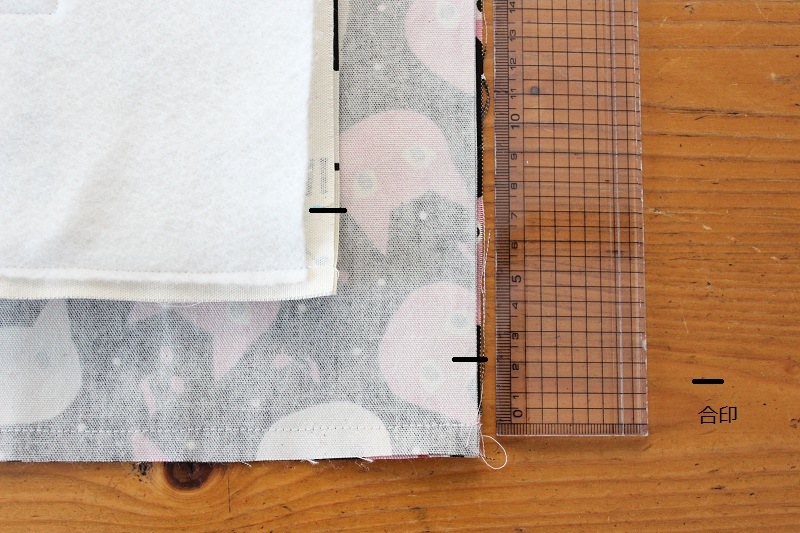 Attach the fusible quilt batting to the front/outer fabric. Make the bottom portion of the front/outer side and the lining side. Sew together the bottom with 1cm seam allowance. Notch the fabric at 3cm (including the seam allowance) from the bottom.