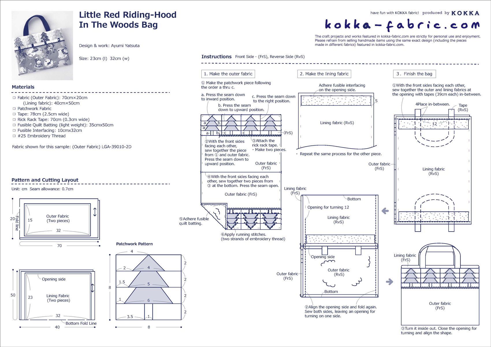 KF: Thank you very much, Ayumi! Here are sewing instructions along with step by step photos from her. Enjoy crafting!