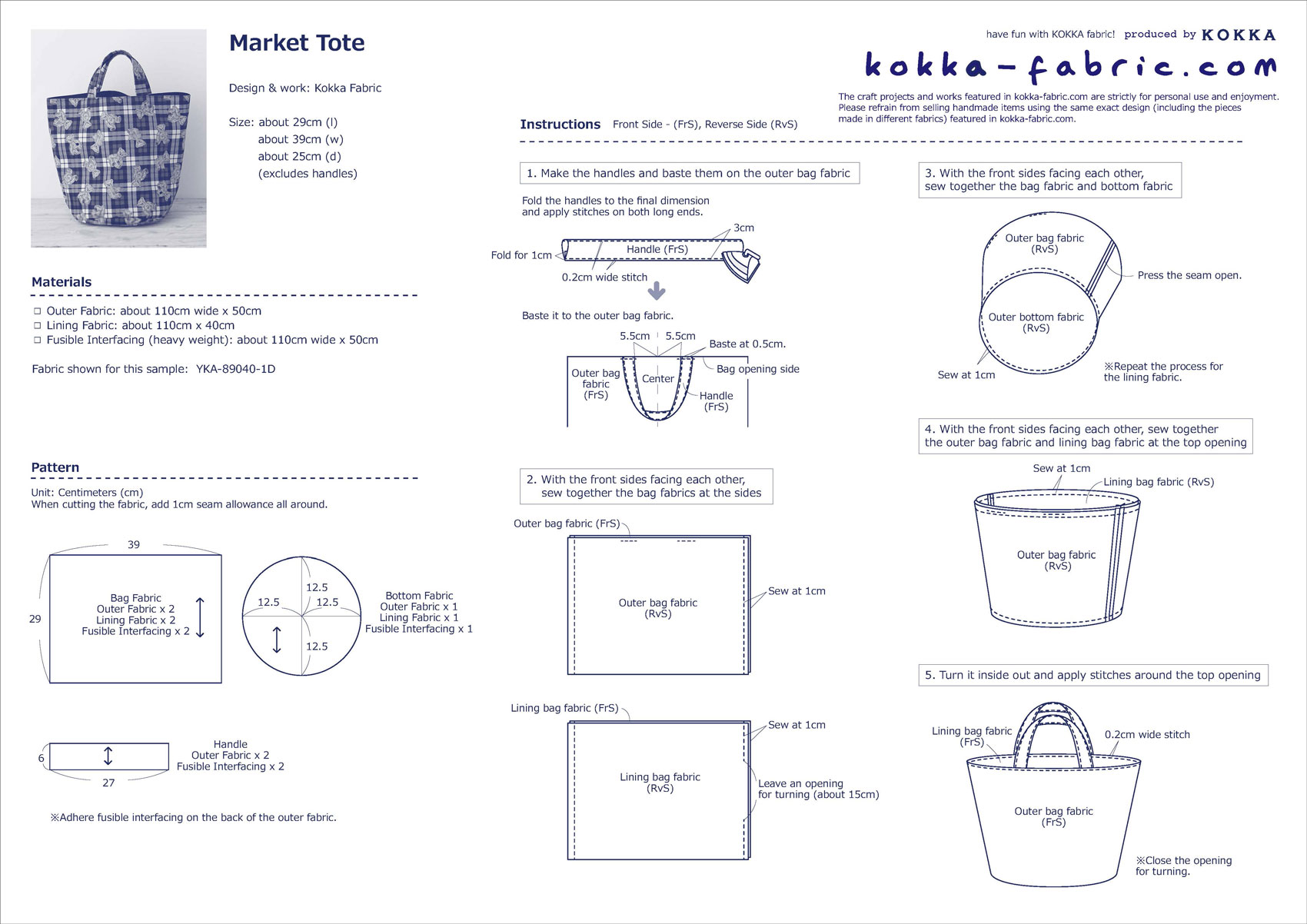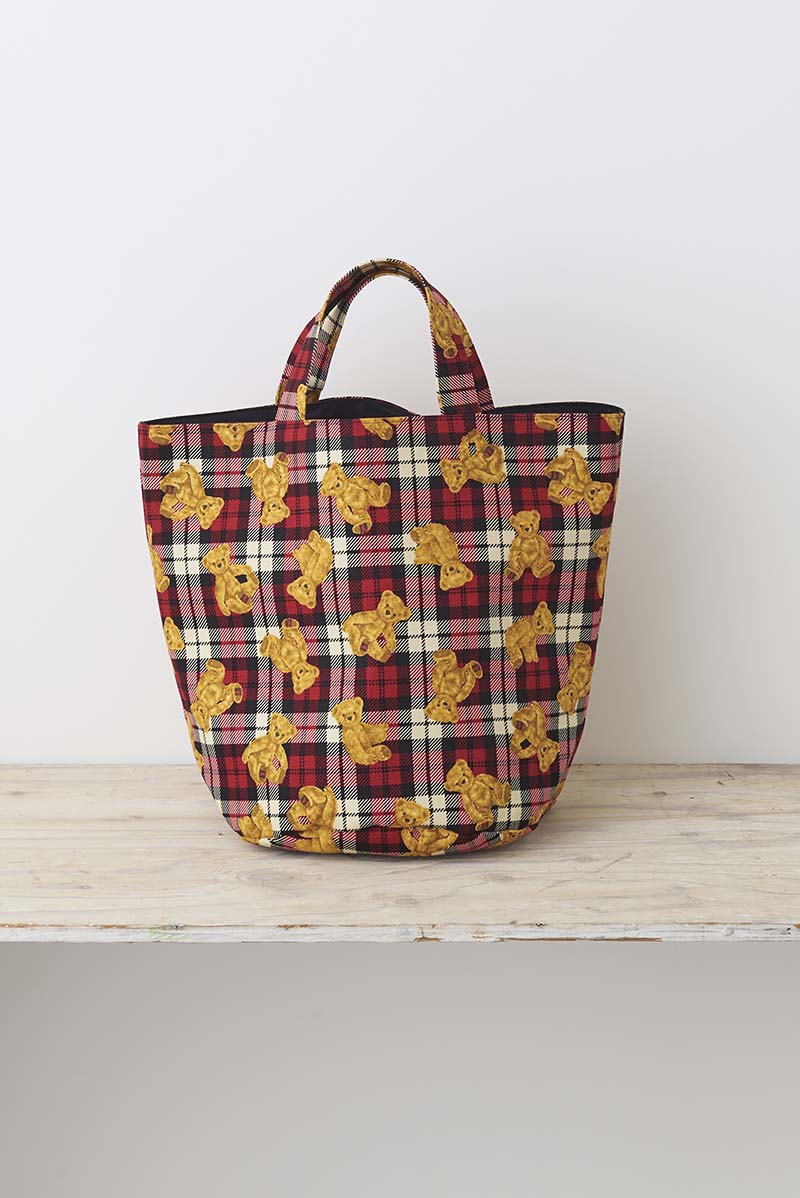 A marché bag with a wide opening is convenient for bulky items and can hold a lot. Additionally, the round bottom design is perfect when you want to do a lot of shopping. The featured fabric is from the “Sweet Time” series. This piece with a traditional tartan check and teddy bear pattern will be useful as a sub-bag for your outings.