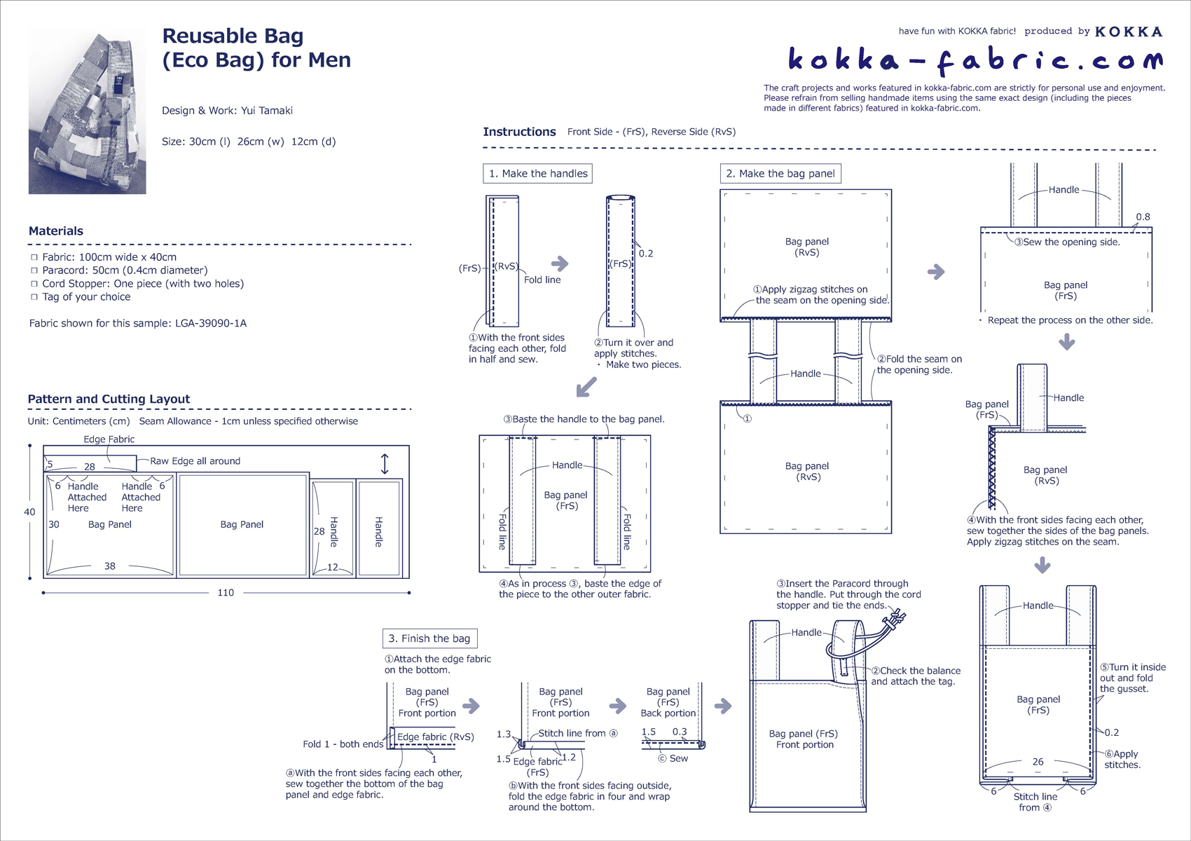 It is a simple shopping bag that men feel comfortable carrying, and is easy to fold when not in use. I focused on making it simple to sew, so I think that even handicraft beginners can make it nicely.