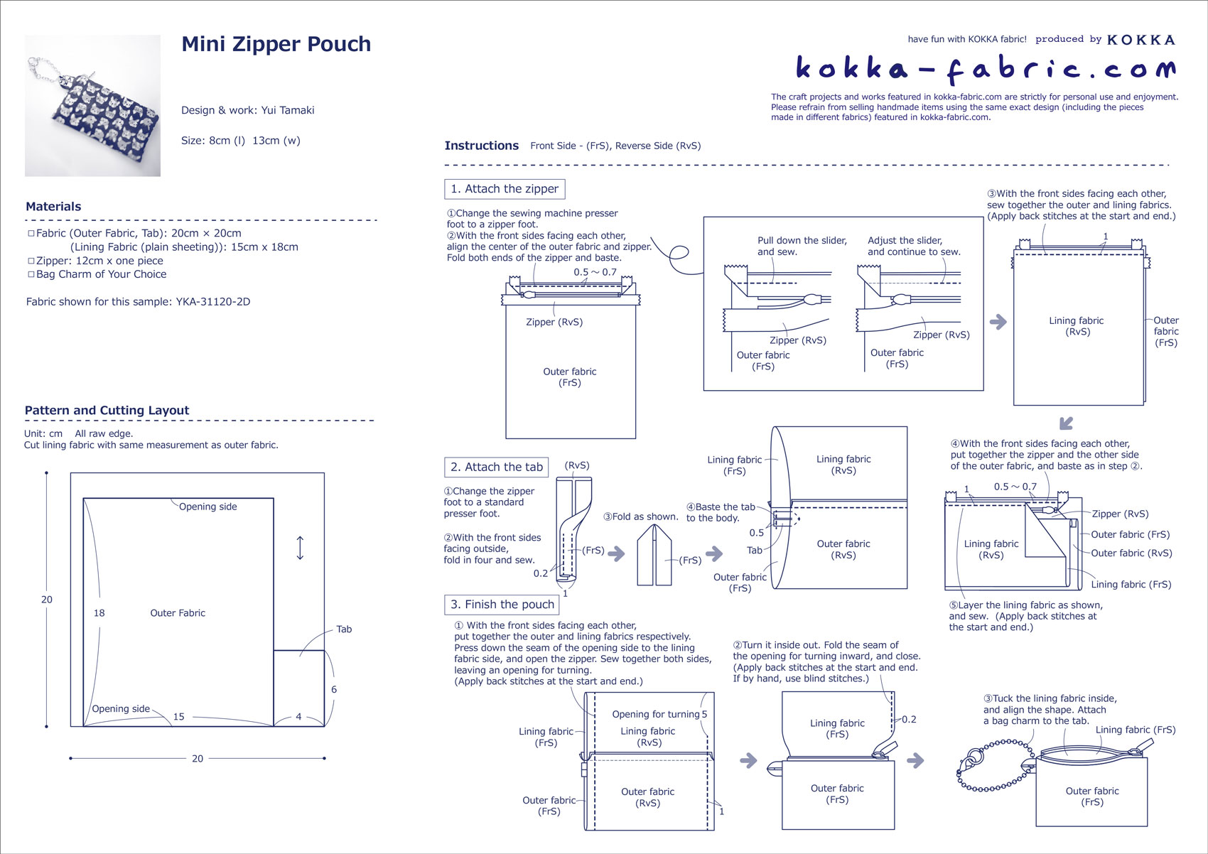 - Fabric (Outer Fabric, Tab): 20cm × 20cm