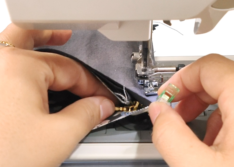Repeat the same process for the other side of the zipper. Pull up the zipper foot and adjust the zipper slider as you sew.
