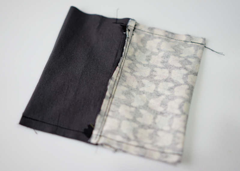 With the front sides facing each other, sew together the piece from ① and lining fabric with 1cm seam.