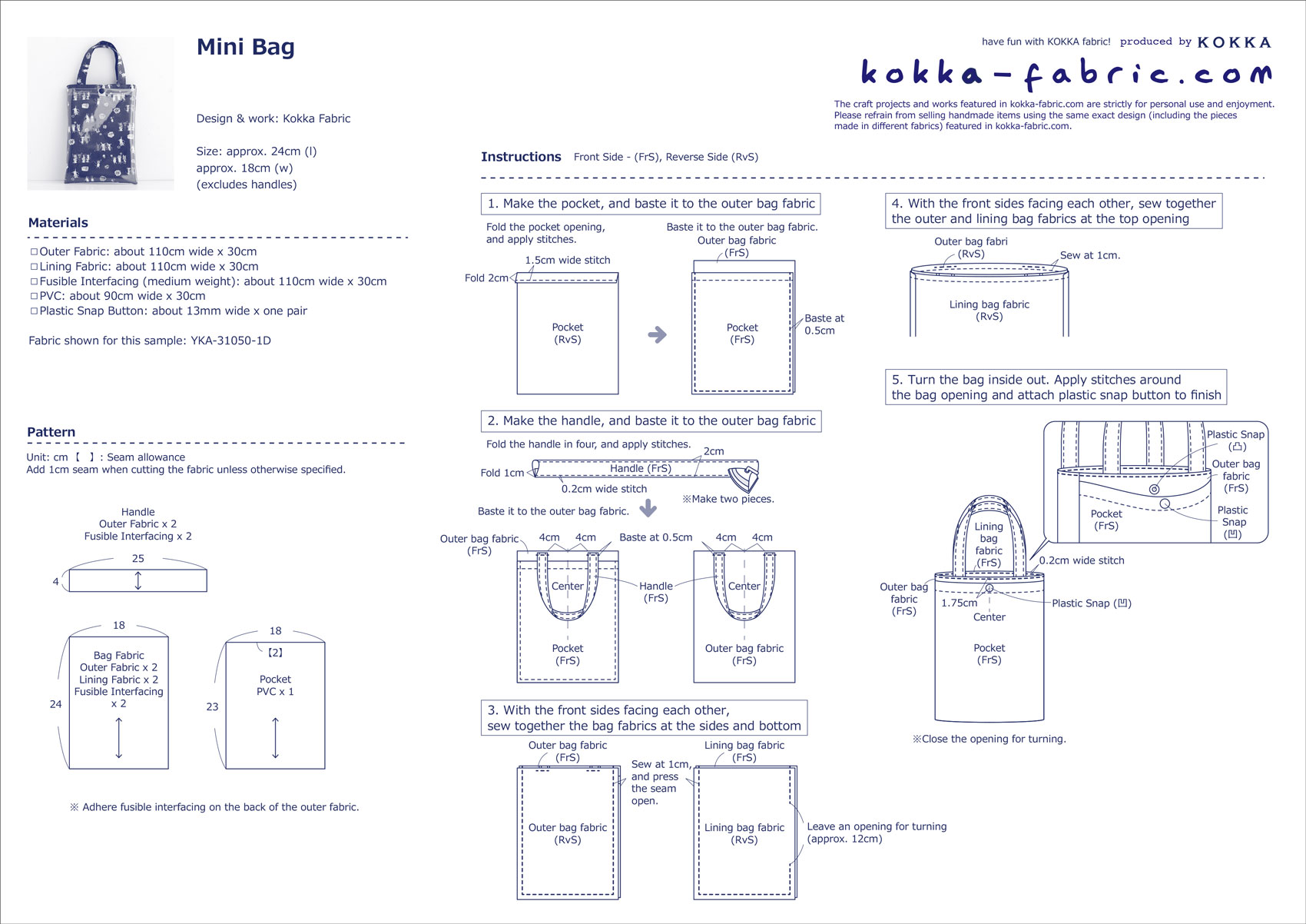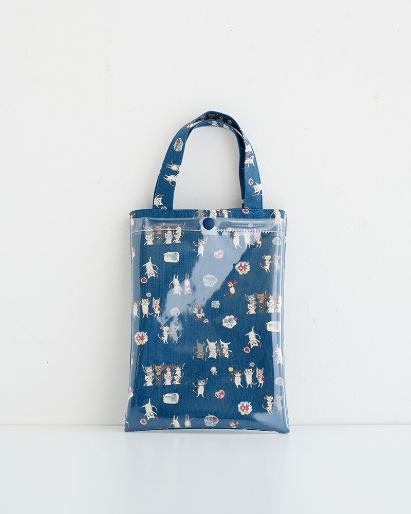 With a transparent vinyl pocket, this mini bag allows you to store items that you want to quickly access or even show off. The fabric used for this bag is from the “Chibi Puri” series with a cat pattern. The small size motifs fit perfectly for a mini bag. Made from 100% cotton sheeting.