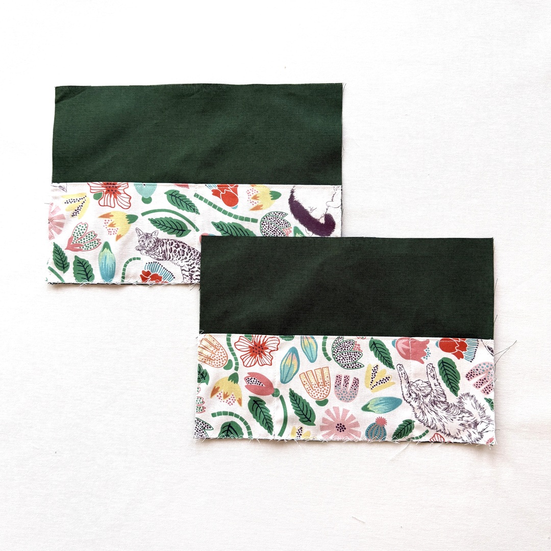Sew together the gusset fabric and body outer fabric. Press the seam open.