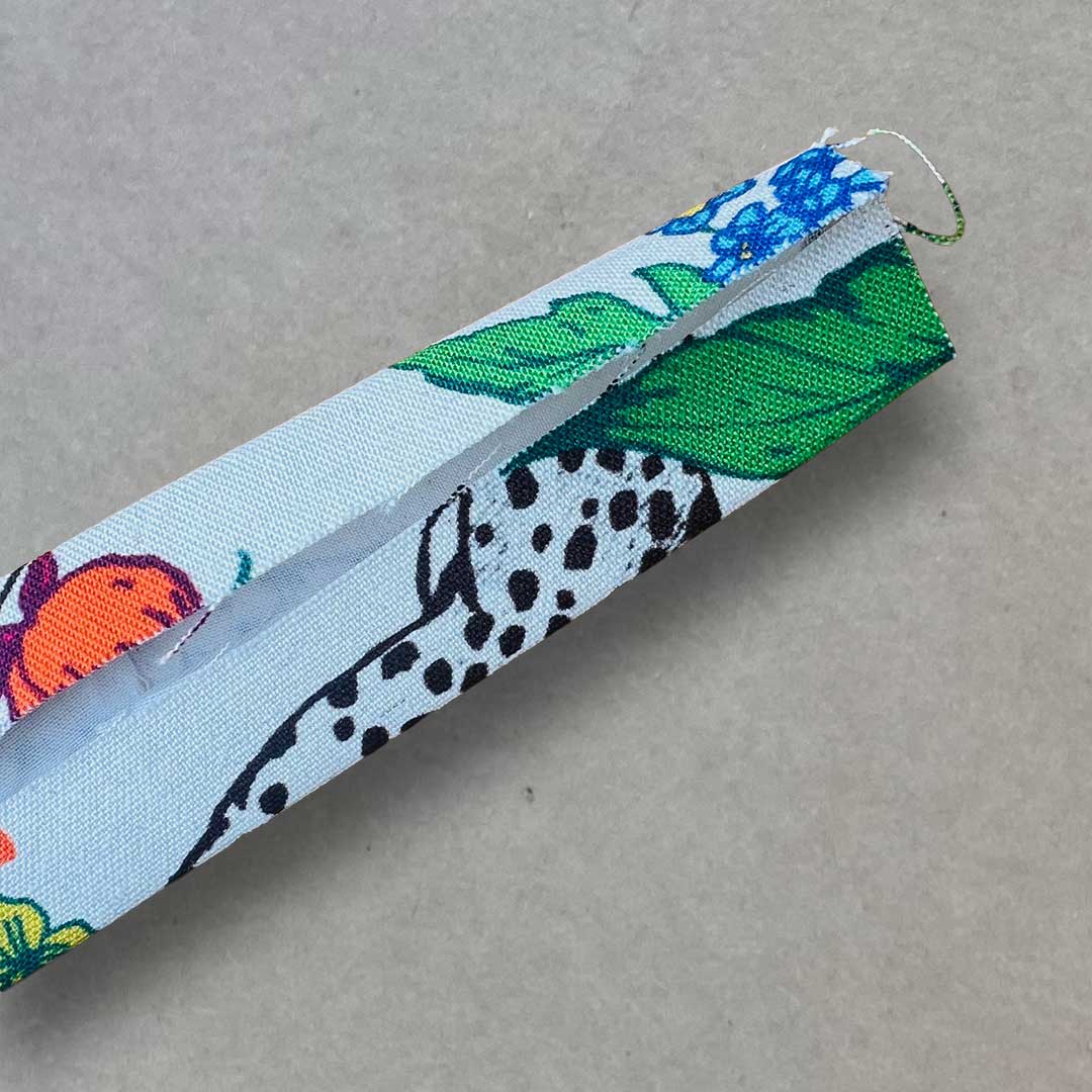 Make the handles. With the front sides facing outside, told the fabric as shown in the photo.