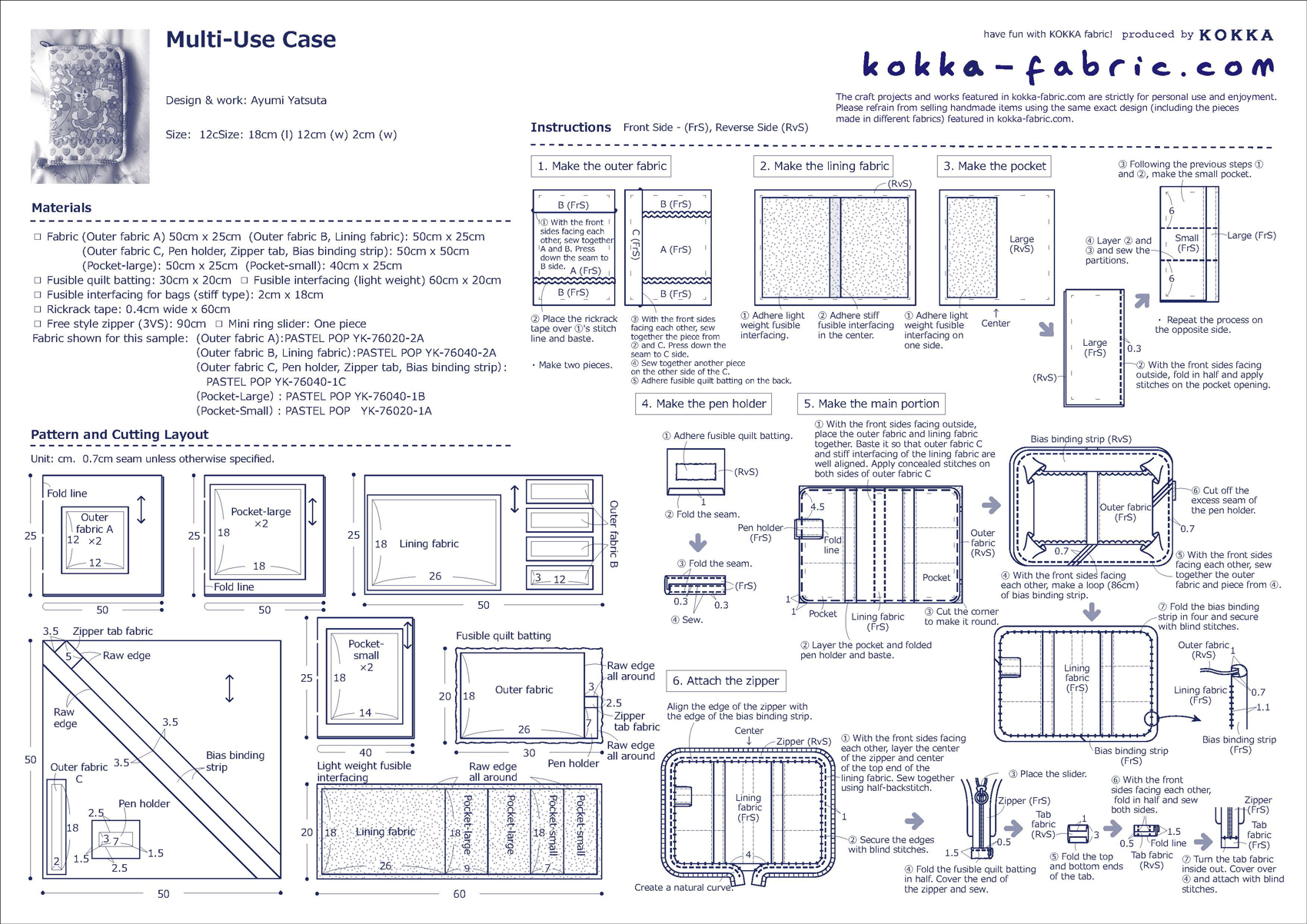 KF: Thank you very much, Ayumi! Here are sewing instructions along with step by step photos from her. Enjoy crafting!