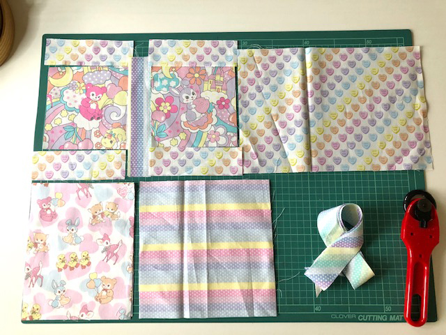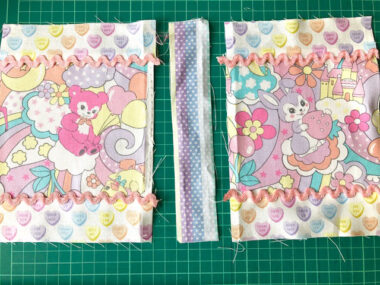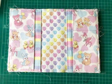The animals and heart motifs in the soft tones of pastel are so lovely that I truly enjoyed making this piece. The well-coordinated colors in PASTEL POP series work great without looking busy even when you combine it with all different designs. In particular, this striped fabric can be worked in many ways. One way to use it is as a bias binding strip. Another way is to use it vertically or horizontally to create a different look.