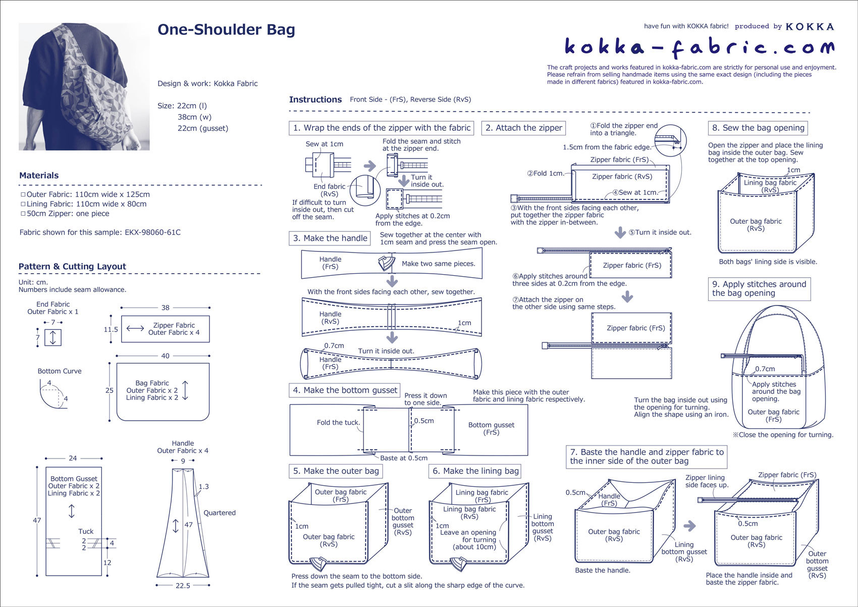 - Lining Fabric: 110cm wide x 80cm