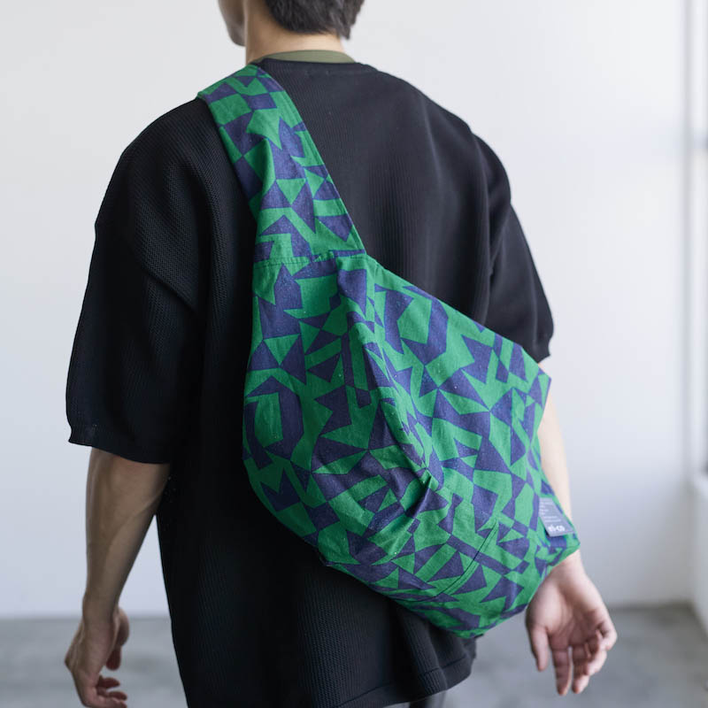 This is a casual one-shoulder bag. The fabric used for this piece is “patch” by “echino,” a design that looks like a combination of various shapes. Inorganic motifs mainly in cool colors make this fabric versatile for use by any gender. This firm cotton linen canvas fabric with tension can be widely used for bags, aprons, throw pillowcases, and small miscellaneous accessories.