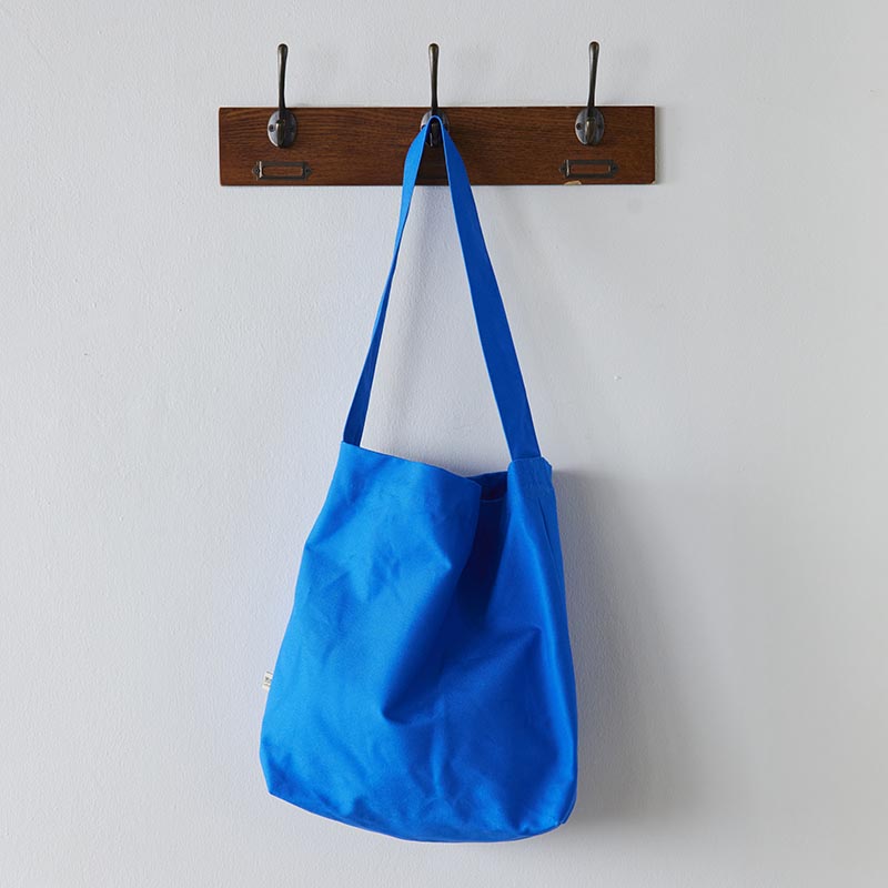 A simple single-strap bag made of one piece of fabric. The aqua blue fabric used for this bag is from the “NUNO TO MONO” series, the #9.5 canvas, which has the thickness between the #11 and #8 canvas. It was created in response to customer comments that the #8 is too thick and difficult to sew with, but the #11 is not durable enough. Thick yet easy to sew, #9.5 canvas is a “new standard” for bag making. The more you use it, the more the texture of the fabric gets enriched with a relaxed feel, making it a fabric that you cherish. 100% cotton. Use of a sewing machine needle for thicker fabrics is recommended.