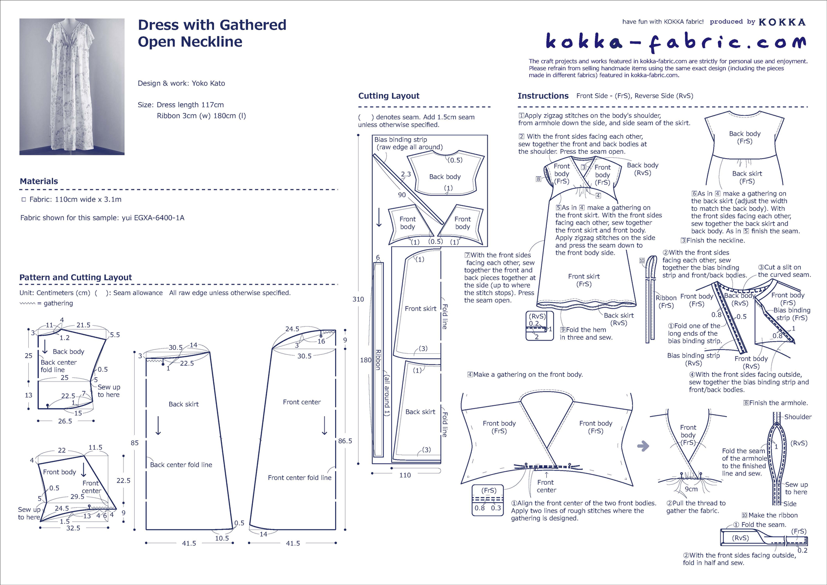 The grain of this fabric is orderly, making it easy to handle. When finishing the front neckline with a bias binding strip, please be careful not to stretch the neck length.