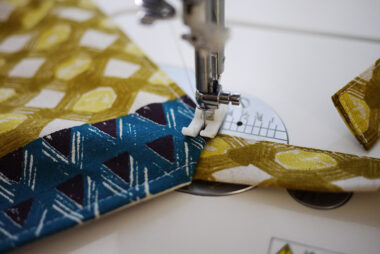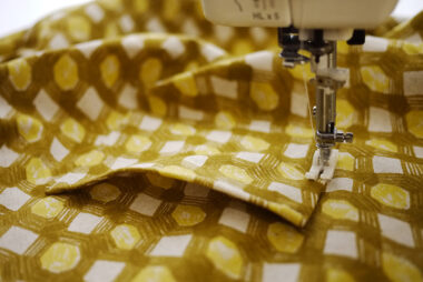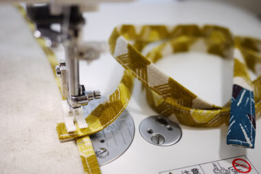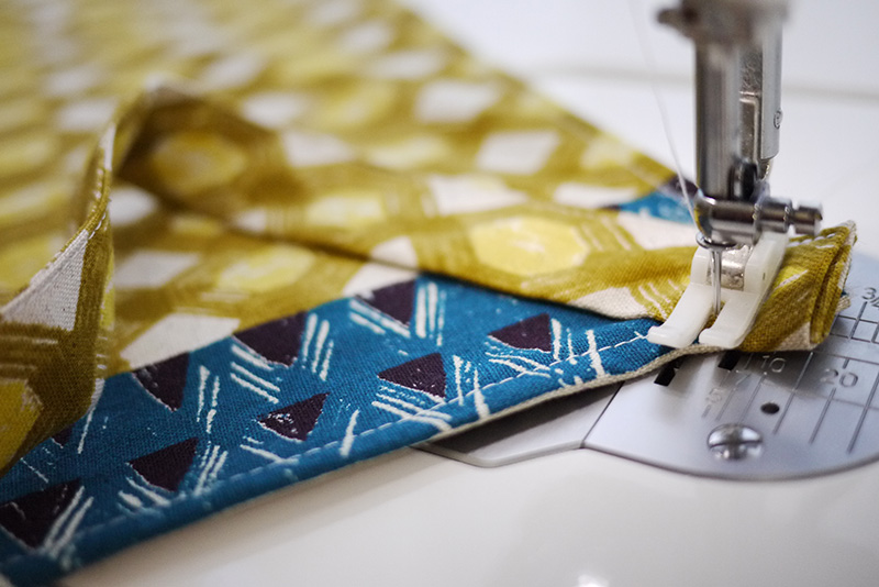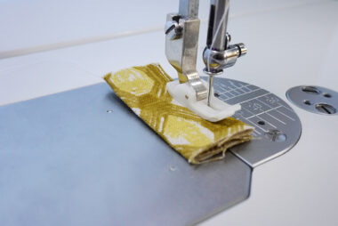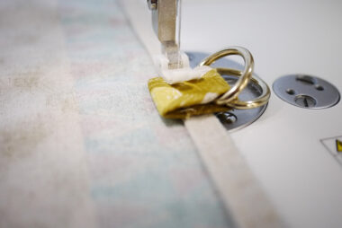 Make the tab. Gate fold the fabric. Apply stitches at 2mm from the edge.