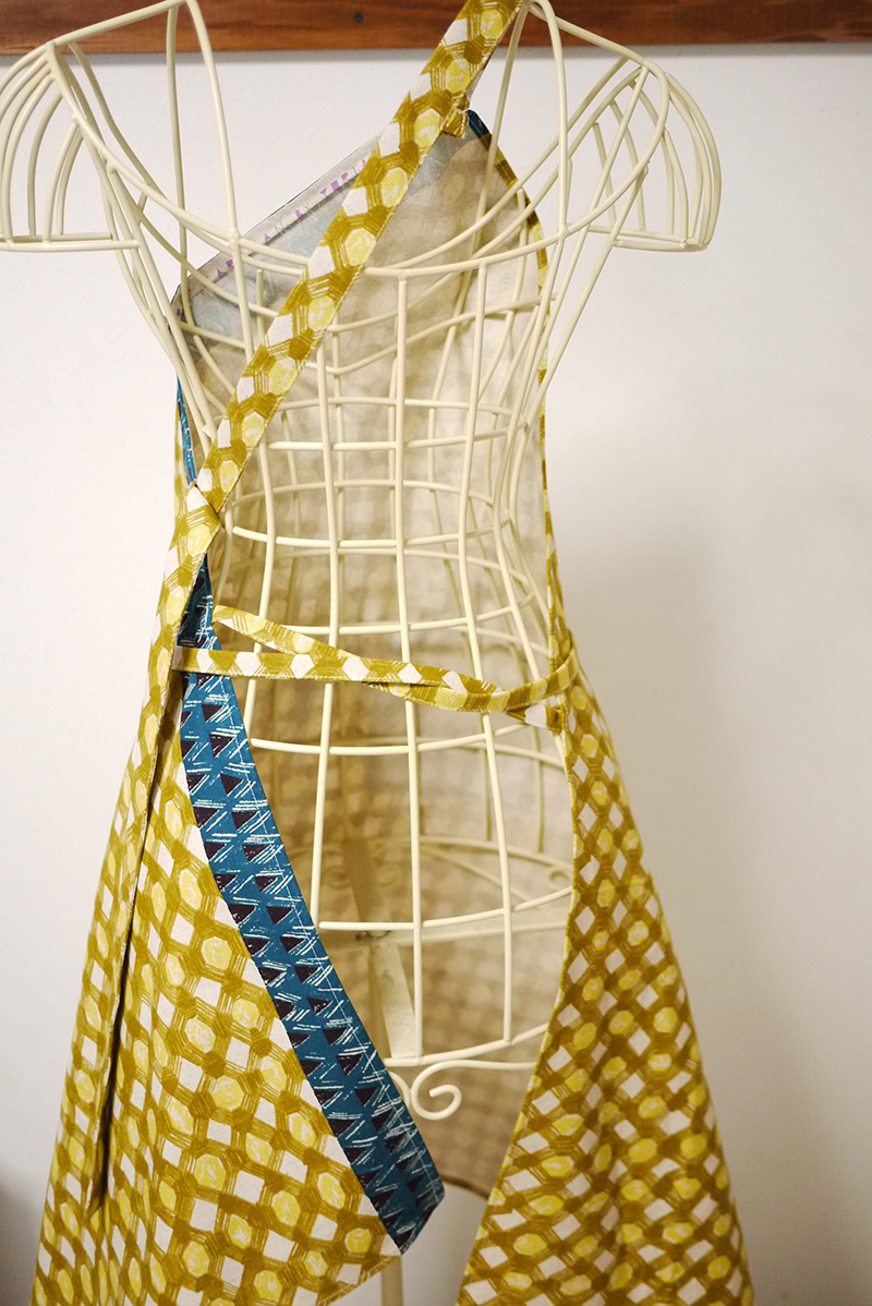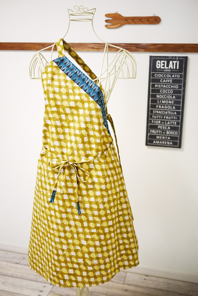 Ethnic style design with bright colors liven you up. It is also an easy-to-sew fabric with an appropriate thickness. I took this opportunity to create a single shoulder strap apron, something that I have always wanted to make.
