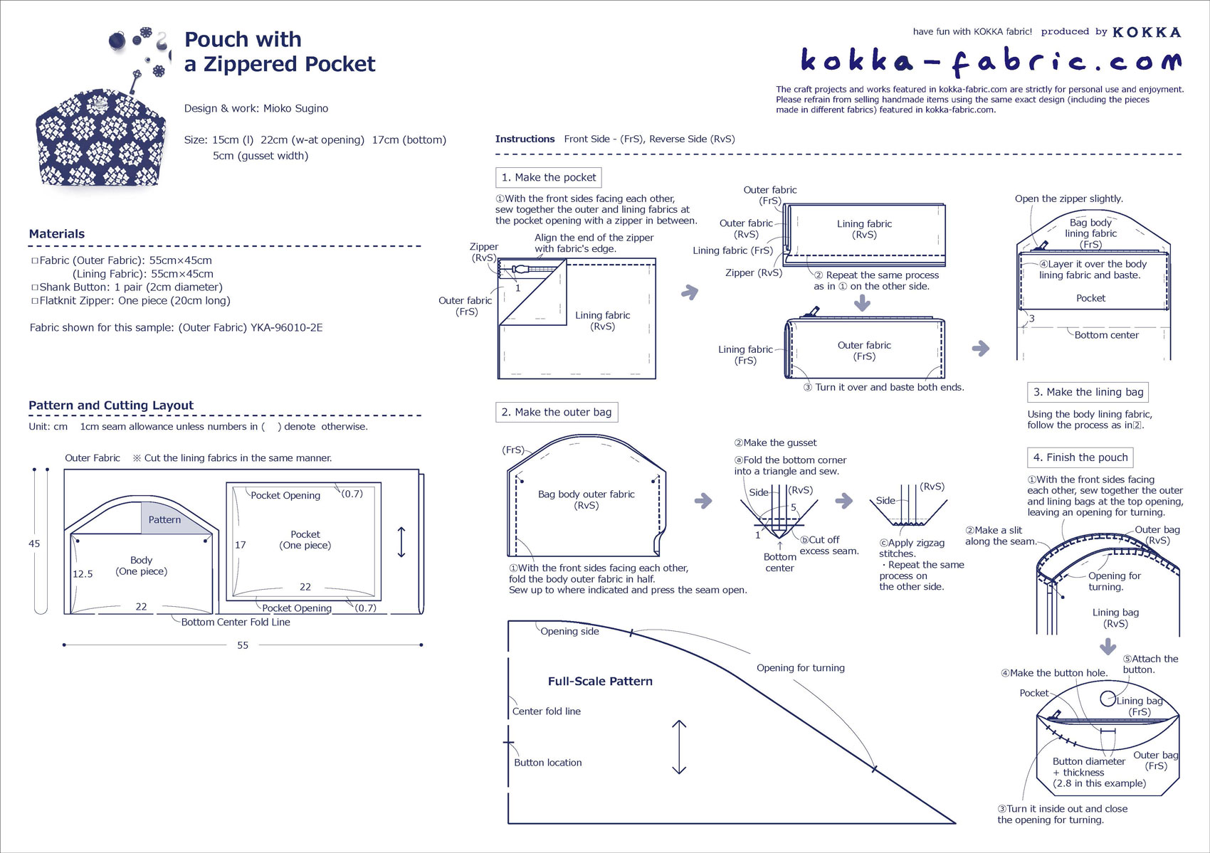 Clean Look and Ample Room♪ – Pouch With A Zippered Pocket – Sewing Instructions