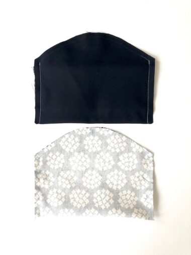 Fold the body lining fabric in half. Sew both ends up to where it is indicated to stop. Repeat the same process for the body outer fabric.