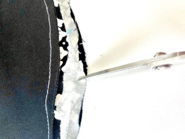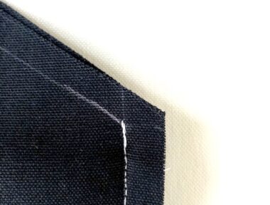 Press the seam open. Make the gusset (5cm). Cut off excess gusset and finish the seam.