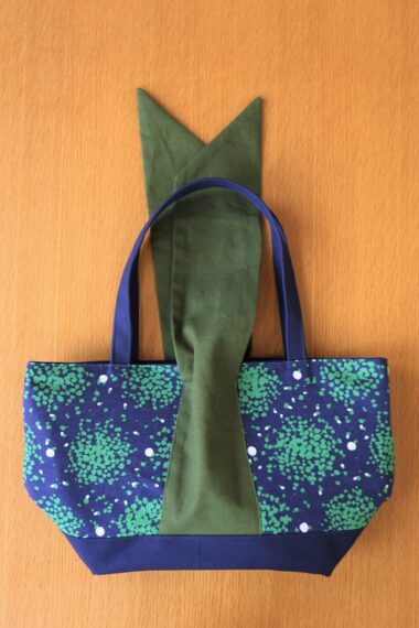 The contrast between the base color of navy and the green of the patterned portion is beautiful and creates a cool impression. With the large pattern and solid texture of the fabric, I thought it would be perfect for a bag.