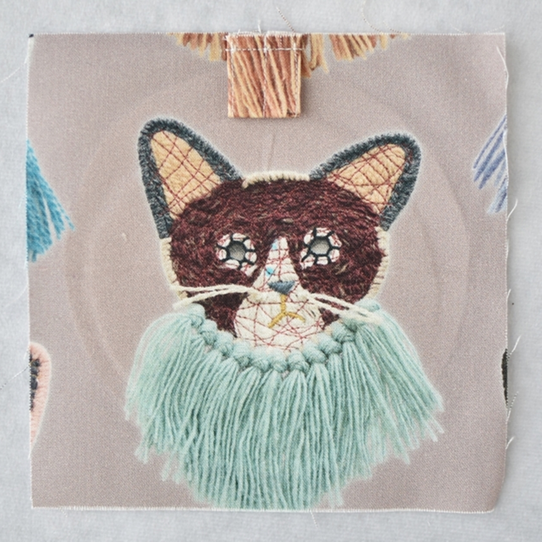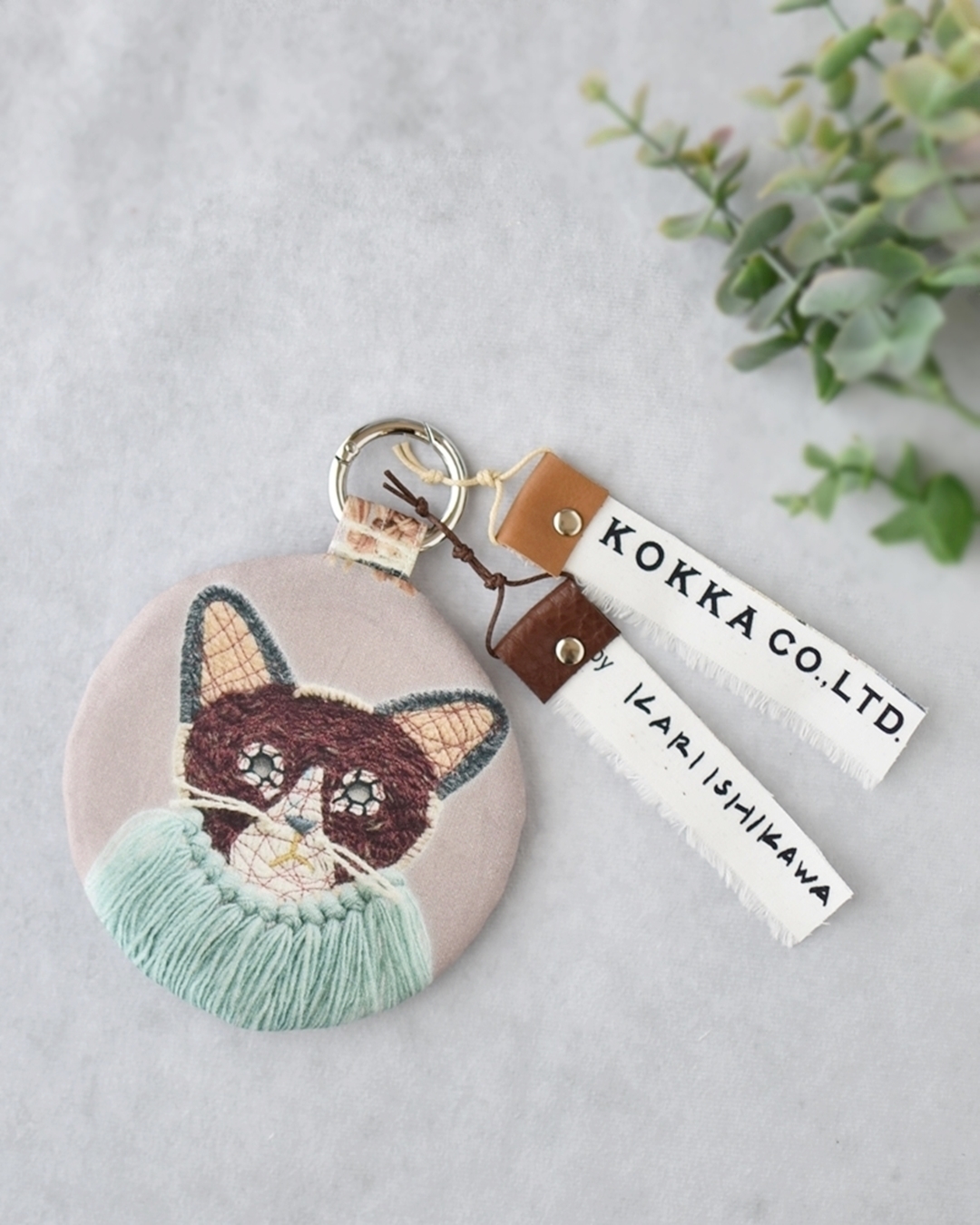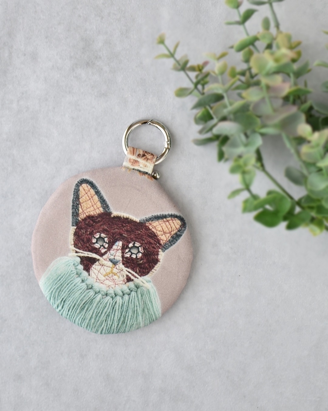 This flat round pouch helps neatly organize small items like keys and lip balm that tend to get lost in your bag. The zipper is attached straight across the back, making it easy enough for a beginner’s sewing project. You can also turn this pouch into a bag charm by attaching a carabiner to the tab. The fabric used for this pouch is [we are cats] by fiber artist Kari Ishikawa. It is 100% cotton sheeting, easy-to-sew, and perfect for making bags and small accessories.