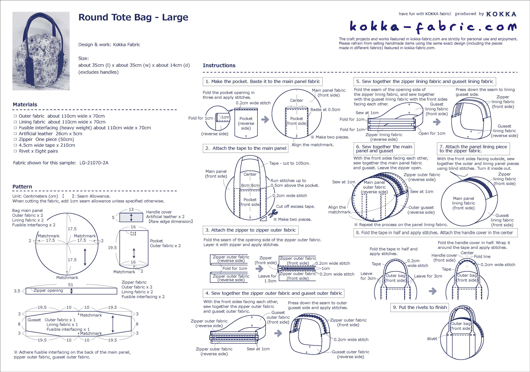 The flower field is filled with kitty cats. A realistic look and vivid color tones are created by currently popular inkjet printing. Adding a heavy weight interfacing will give this thin and easy-to-sew seething fabric a solid texture needed for a bag. A cute round form and eye-opening bright print will make a great accent to your simple style of clothing!