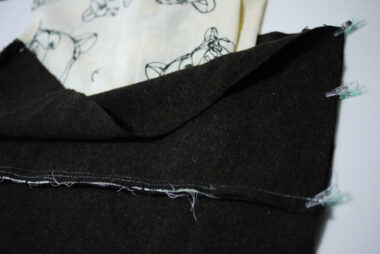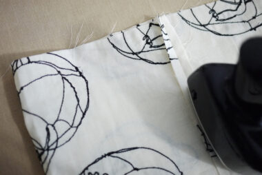 With the front sides facing each other, sew together the top and bottom portions of the outer fabric. Press down the seam to the bottom side. Repeat the process for the back side.