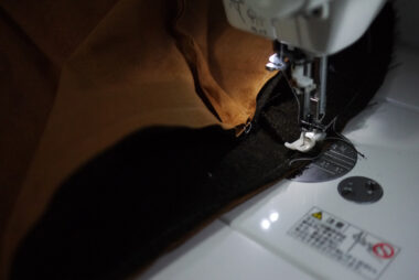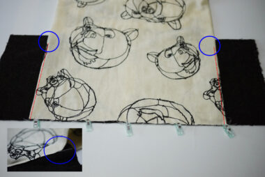 With the front sides facing each other, baste the bag outer fabric and bottom outer fabric and sew together.