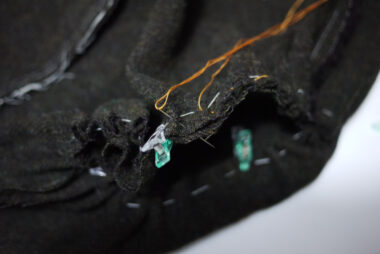 Apply rough hand stitches at the bottom. Pull the thread to gather the fabric.