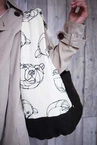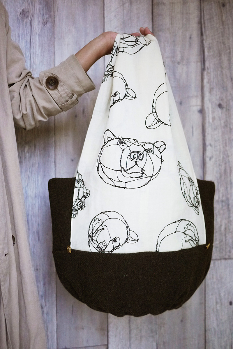 I thought the design is unique and hip! To make great use of the large motif and softness of the fabric, I decided to make a bag.