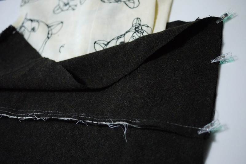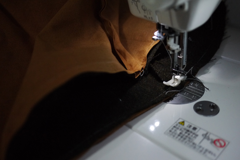 With the front sides facing each other, sew together the front and back of the outer fabrics.
