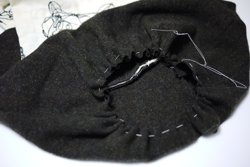 Apply rough hand stitches at the bottom. Pull the thread to gather the fabric.